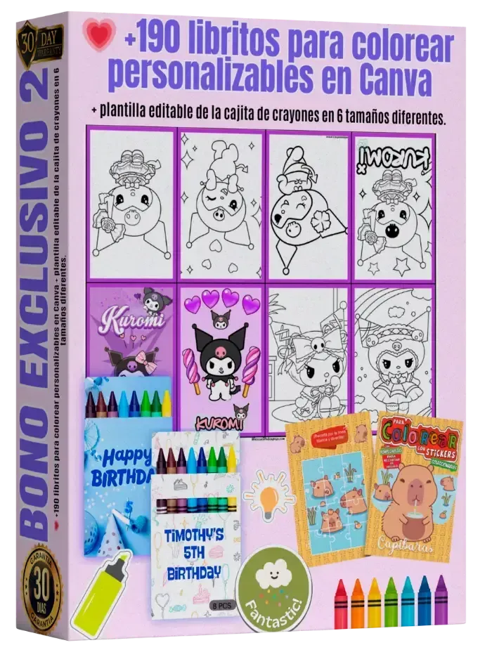 💗 +190 libritos para colorear personalizables en Canva + plantilla editable de la cajita de crayones en 6 tamaños diferentes.