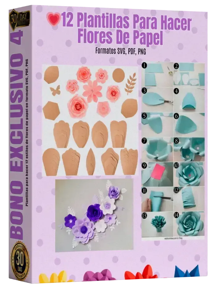 💗 Plantillas para hacer 12 estilos de flores de papel en formato SVG, PDF, PNG